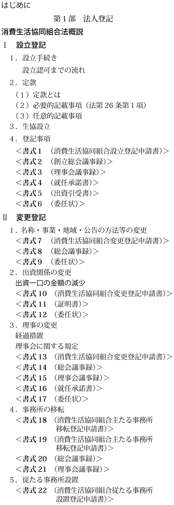 【「改訂版」生協の登記手続きの実務 詳細目次】